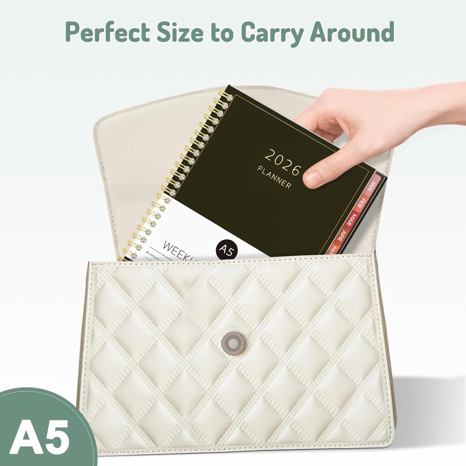 Trusted Quality for Full Year Use: The protective plastic cover is sturdy and water-resistant to prevent pages from creases or splatters. Adopted thick, no-bleed paper for easy writing. Colored monthly tabs for simplify navigation are laminated to resist tears. Double-sided pockets for loose papers. Measuring 6.3″ x 8.4″, perfect size to fit in your purse or backpack and take anywhere!
